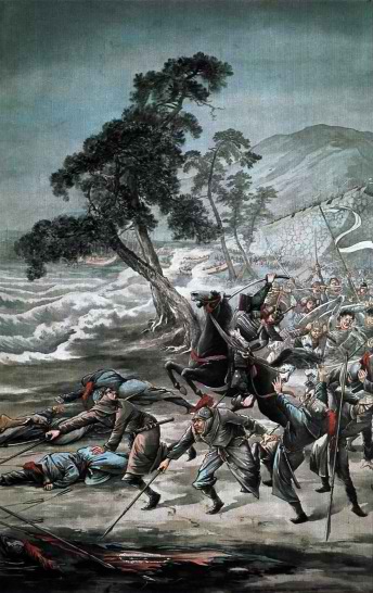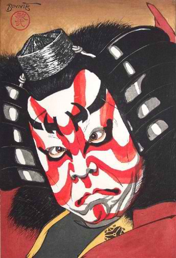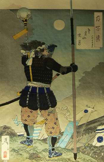 | Amikor Jaszaburóval leírattam költeményét egy sikisire a következő szavakkal emeltem ki a kalligráfiában rejlő életerőt: „Gondold azt, mintha csak egy, az egész sikisin szétterülő szót írnál, és ecseteddel szétszakítanád a papírt. Életerődtől függ, hogy kalligráfiád elfogadhatónak bizonyul vagy sem. Amíg a szamuráj tele van tetterővel, határozott és nincs kimerülve, csak az életerőt kívánják meg tőle.” | ![]() |