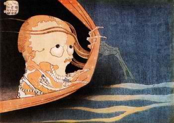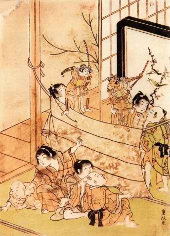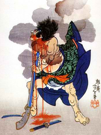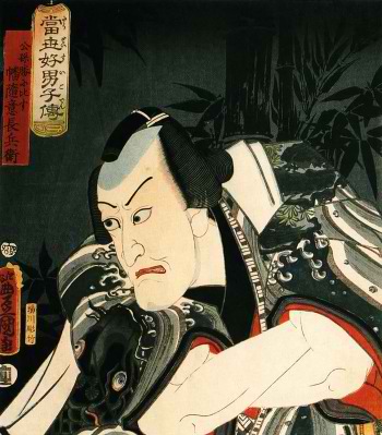Szagara Kjúma egy volt az ezredből, aki urával egyetértésben régóta lemondott életéről és szívéről. Egyszer Szakjó herceg, aki meglehetősen ellenséges érzülettel viseltetett Micusige nagyúr iránt, titkos összejövetelt rendezett mizugaei birtokán, ahol az a döntés született, hogy Kjúma kövessen el szeppukut. Így Micusige nagyúr azt a miniszterét veszíti el, akiben a legjobban megbízott. Kjúma kiszimatolta ezt a tervet, bérelt egy háromszintes teaházat Taku Inu rezidenciájában, és összeverbuválta Szaga város összes pokolfajzatát. Bábszínházat rendezett, melynek során maga is mozgatott bábokat. Éjjel-nappal folyt a féktelen mulatozás Szakjó herceg rezidenciájával szemben. Kjúmának az volt a szándéka, hogy megbotránkoztató viselkedésével szégyent hozzon magára, így igazolja urát döntésében, és tisztességgel vesse alá magát az előre eltervezett szeppukunak. |